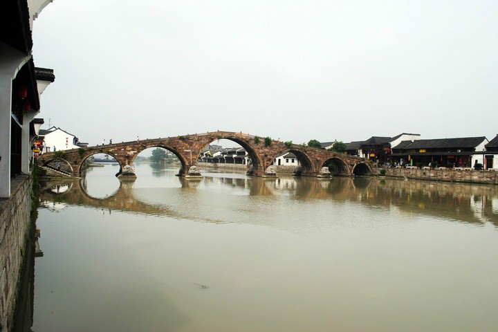 三孔石拱桥是杭州的拱宸桥,七孔石拱桥是塘栖的广济桥(本地人管它叫“长桥”),都是大运河上出了名的古桥梁建筑。