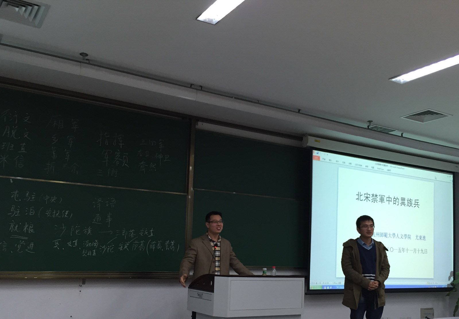 讲座一开始,尤东进老师便抛出本次讲座的关键问题,并紧紧围绕这些问题,对北宋禁军中异族兵的民族成分、士兵的来源与补充、规模和驻地、职能等展开剖析。尤老师就北宋禁军中是否有契丹、渤海、吐浑等八个民族的士兵进行考证。尤其在禁军中是否有日本人这一点上,尤老师和同学们一起对史料展开辨伪考证,并就史料的使用问题给出了许多切实可行的建议。最后,尤老师还将异族兵与蕃军、一般禁军、辽金元等部队联合军进行了比较。