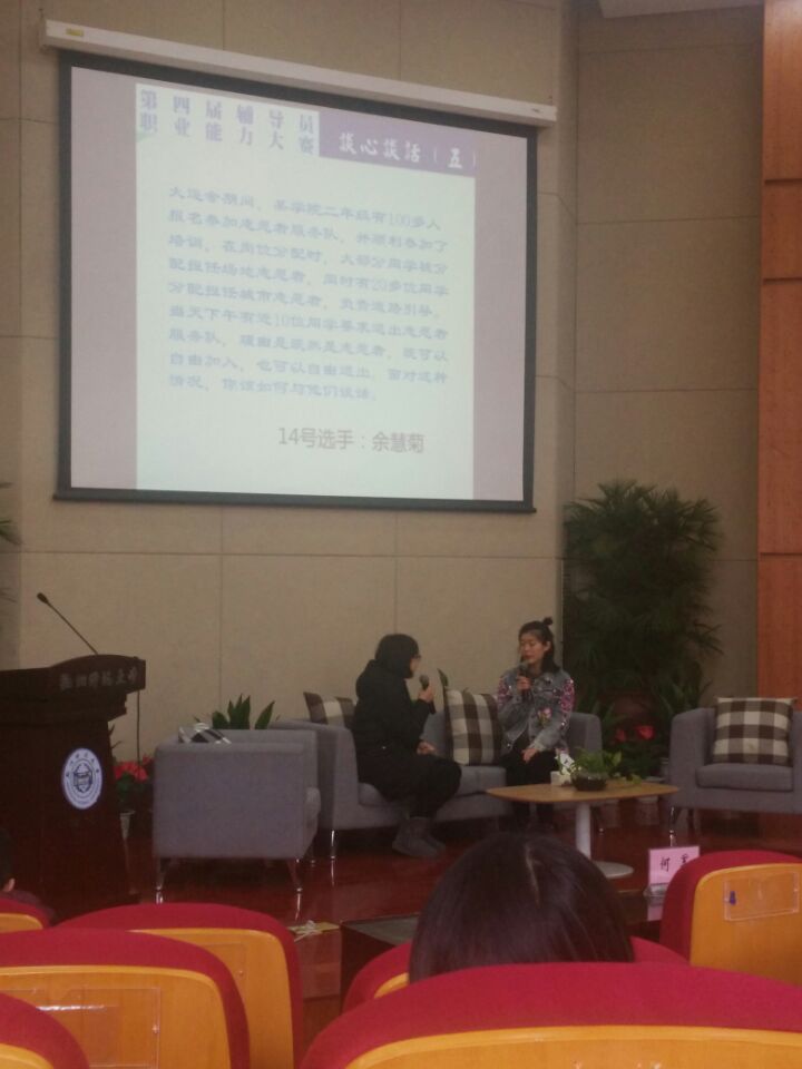 第四届辅导员职业能力大赛分为初赛和复赛。初赛全校辅导员参与,根据笔试成绩排名确定决赛名单。复赛分为案例分析、主题演讲和谈心谈话。在复赛现场,余慧菊老师和孔祥亮老师凭借自己的专业优势和积累的工作经验,精准分析学生问题,流利表达观点立场,适时适度对学生开展引导,给现场的评委和观众留下了深刻的印象。