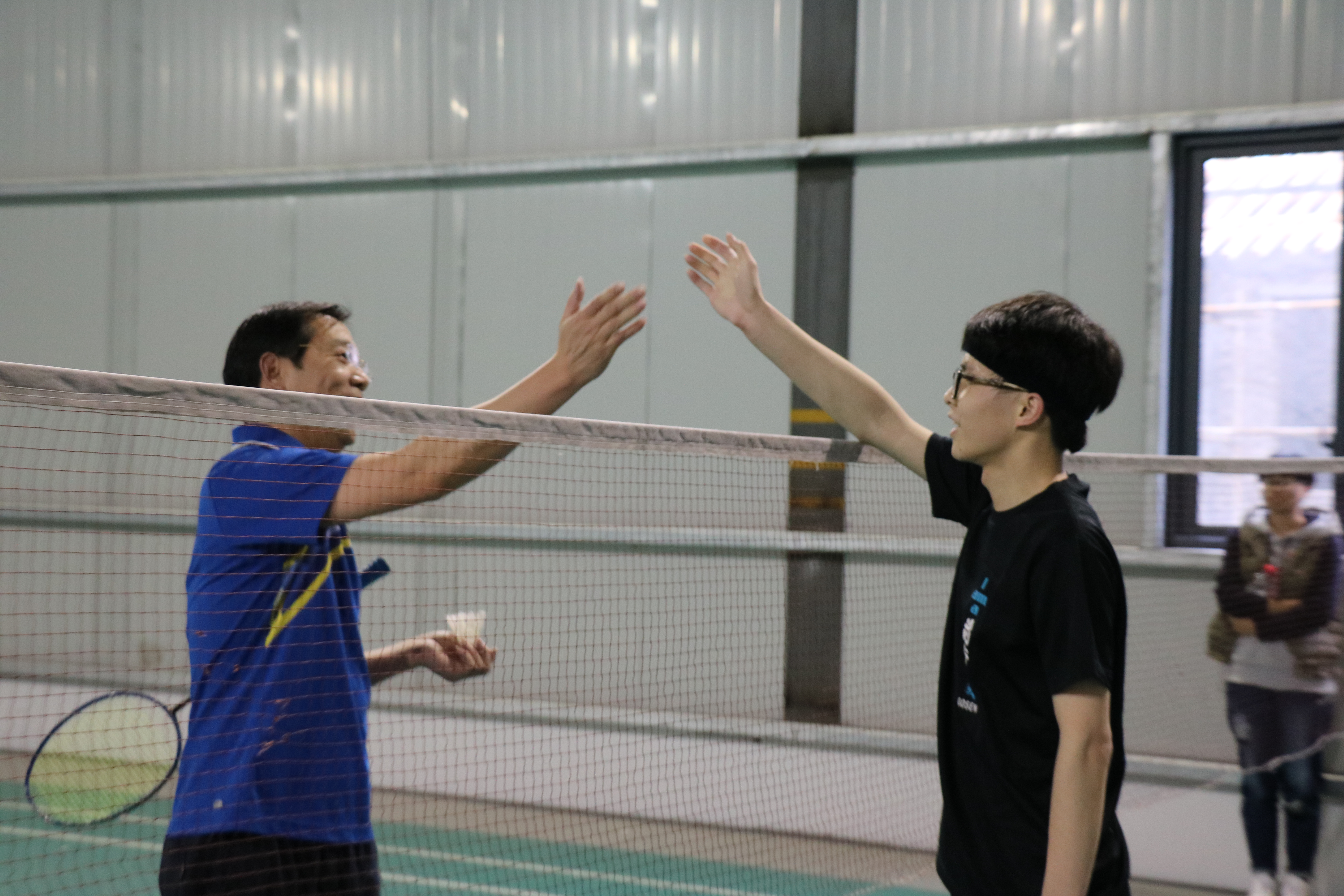 短暂的热身赛过后,比赛正式开始。首先是男子单打和女子单打的淘汰赛。通过抽签,学生组选手和教师组选手按顺序一一进行比拼,优胜者则进入三局两胜制的单打决赛。经过激烈的角逐,斯炎伟老师最终力压群雄摘得男单桂冠,陈燚楠同学拿下女单冠军。