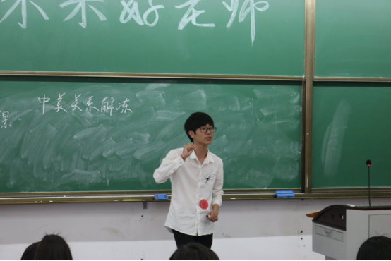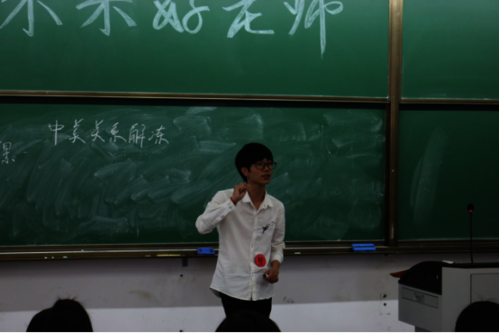 比赛主要分为即席演讲与模拟讲课两个环节,以求全方位考察参赛选手在“教学设计、课件制作、模拟上课、板书”等四个方面的能力。在即席演讲环节,选手们语言流畅,条理清晰,演讲内容生动切题。在模拟讲课环节,各位选手的表现也都可圈可点,让现场交织着散文的幽雅、诗歌的韵味和小说的趣味。在点评环节,两位研究生评委细致具体地分析了各位选手的表现,并提出了自己的看法与建议。最后,叶黎明老师将中文场的比赛情况总结为四大亮点和四项不足,希望选手们有针对性地进一步提高自身素质。与此同时,历史场的比赛也在紧张激烈地进行着,十位选手依次上台展现了他们出众的临场能力与卓越的讲课技能。最后由胡悦晗老师与林航老师分别对上、下半场选手们的表现做出点评。两位老师在肯定选手们的优点时也强调了教师讲课的目的在于“引导学生们去发现水源,而非一味给予他们水分”,这令参赛选手受益良多,也赋予了比赛更深刻的意义。