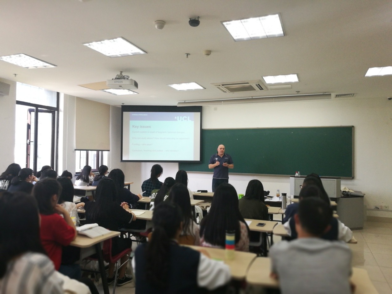 弗雷曼教授对英国的教育体系进行了较为详细的讲解,其中包括教学方式、教学内容、教育管理方式、学校类型以及政府投资等一系列内容;并发表了自己关于中英教育的一些观点与看法。在演讲内容结束后,马克先生以其幽默风趣的交流方式与同学们展开了互动。在场同学对于本次讲座反响热烈,大家普遍表示本次讲座使自己对于英国教育体系这一原先并不熟悉的领域有了较为系统的了解,并且引发了对自己大学学习生活方式的反思与思考。讲座结束后,弗雷曼教授与国产人妻马丁老师、周东华老师、陈兆肆老师、林航老师、周真真老师等进行了深入交流。