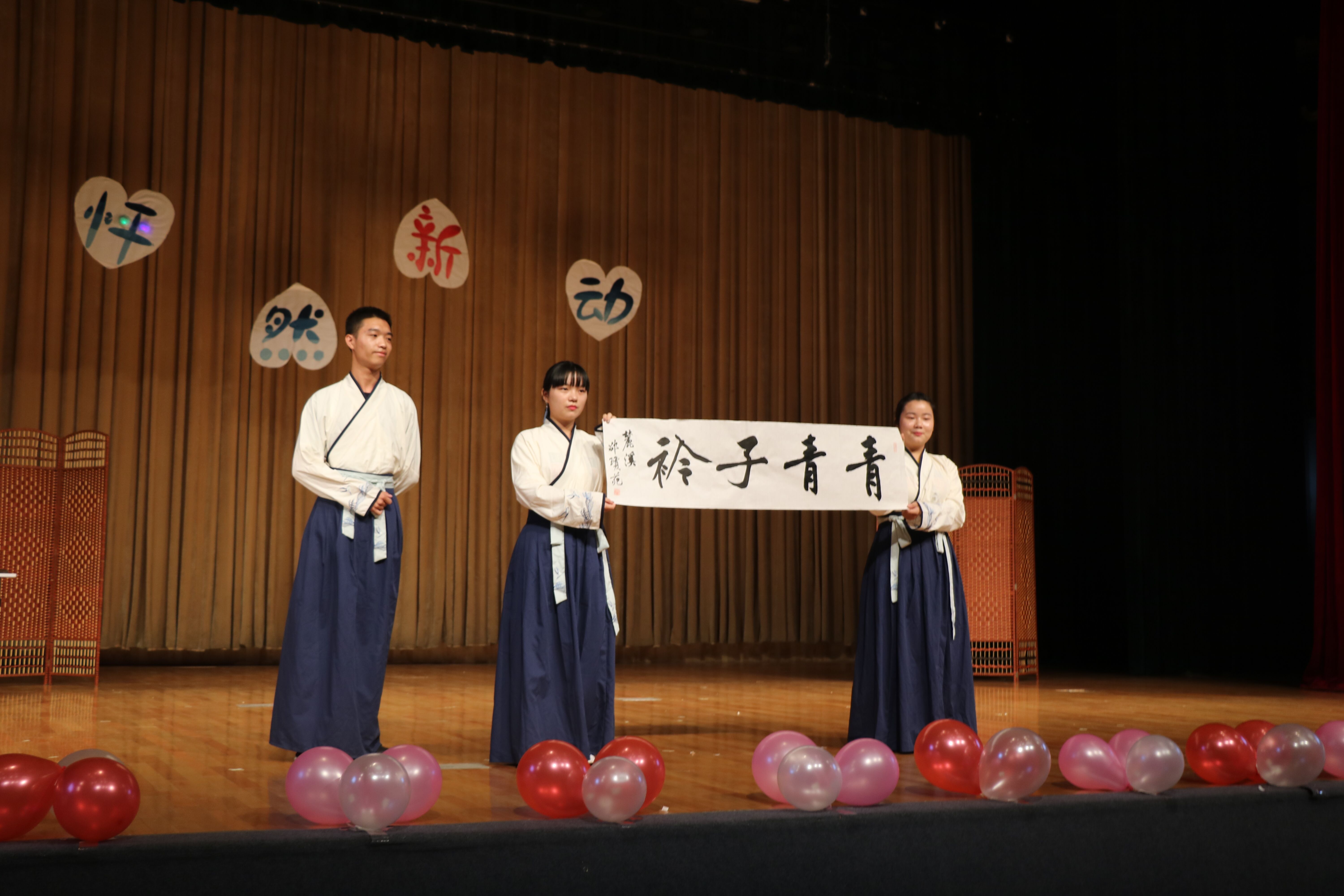 随着强劲的乐声响起,联欢会在大艺团Poppin舞队激情的开场舞中拉开了帷幕。歌舞、朗诵、话剧等精彩的节目为大家呈现了丰盛的视听盛宴。来自晨风网络文学社、博晖文史社、 麓溪书画社 、嘉礼华服社成员表演的节目《子衿》,动作优美、引人入胜,展示着东方的神韵;由流霞剧社带来的话剧《你的心里有几个名字》生动展现了我们在生活中矛盾复杂的一面,并以此鼓励大家勇敢地聆听自己的内心;诗朗诵《活在珍贵的人间》以充沛的情感唤出了我们对生命的尊重;师大奇葩说以大学生兼职为话题进行激烈而奇葩的讨论,为晚会带来了欢乐的气息;歌曲串烧以悠扬的歌声向大家传播着爱与希望;更有大一、大二、大三同学倾情表演的热舞《Cake by the ocean》、《Holiday》引燃全场。整场演出精彩不断、高潮迭起,赢得台下阵阵掌声,欢呼声一浪高过一浪。最后,一支充满爱意的手语歌、一首暖心的《爱因为在心中》将联欢会划上了圆满的句号。