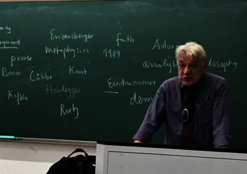 哲学一直被大多数人看成一门高深的学科,但顾教授教授却能自如的将一些较为高深的哲学问题,以深入浅出的方式为师生们讲解。顾彬老师在讲哲学问题时,主要围绕“我怎么样才能做一个真正的人”来展开。当被问及:什么是幸福?什么是生活的意义?什么是死亡……等问题时,大多数一时都难以答出。面对生活的不确定性,可能一部分人甚至会认为生活是没有意义的。但是顾彬教授告诉我们应该相信生活。因为正如黑格尔所说,历史有一个目的性,所以生活是有意义的。顾彬教授还告诉我们:“只有通过爱,我们才能获得最后的形式(form)。”或者我们一时还难以理解这句话,但说不定过段时间,或者更长的时间,我们总能在将来的某一天理解其中蕴涵的哲理。哲学是有趣的,因为它就像顾老师的这次讲座一样,它会为你指明一定的方向,却又会留下一些神秘让你自己探索。