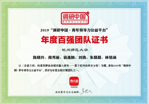 截至6月,南风窗2019年“调研中国”大学生暑期社会调研实践活动全国百强名单揭晓,国产人妻南秀丽、袁逸颖、刘倩、朱晨晨、林铭涵等5名同学申报的《去留之间:快递员群体的城市融入研究——基于杭州的样本分析》项目经过层层筛选,成功入选全国百强。