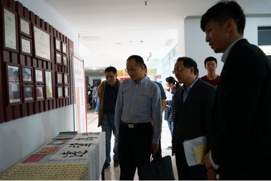 会前,全体人员参观了“祖国,我该如何爱你”国防文化书画作品展、“不忘初心、牢记使命”书法手工作品展,观看了学生朗诵《祖国啊,我亲爱的祖国》。