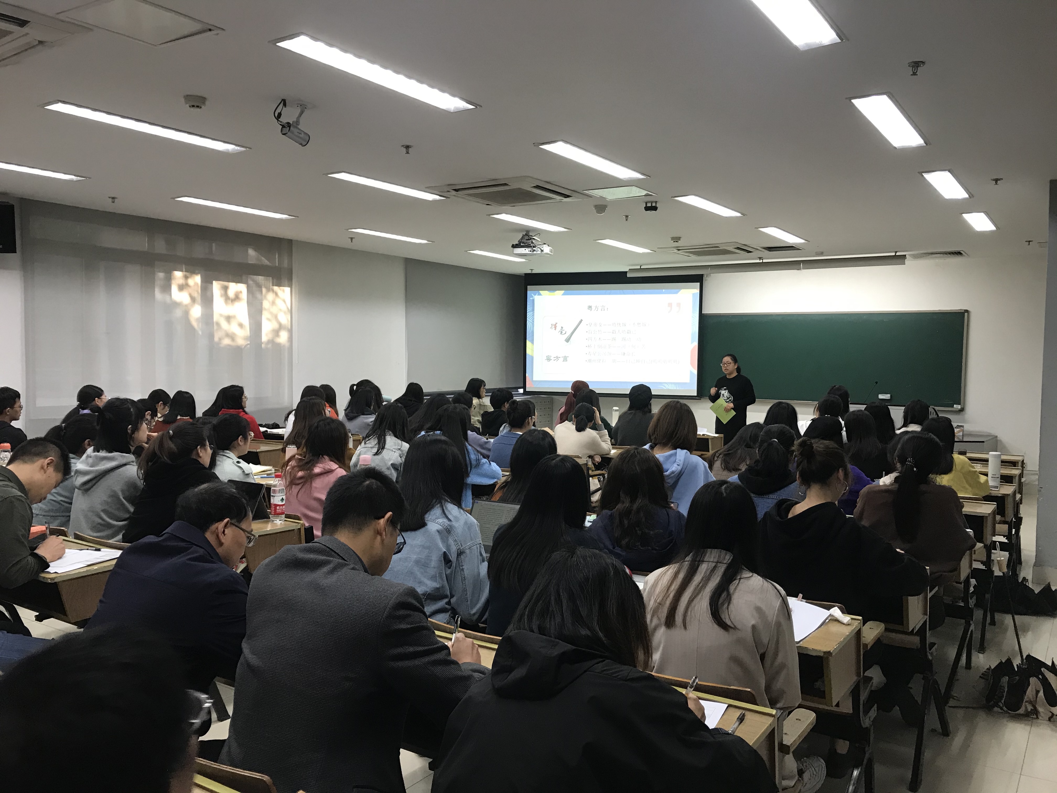 11月6日早上8点05分,无码人妻-国产人妻-国产成人无码 中文系教师张薇的公开课《方言与中国文化》准时在12号楼105教室开始。校党委副书记王利琳、学工部部长何军、无码人妻-国产人妻-国产成人无码 院长洪治纲、党委书记诸英、副院长陈兆肆、副书记管庆江,会同语言学教研室的部分教师一起,观摩了张薇老师的课程教学。
