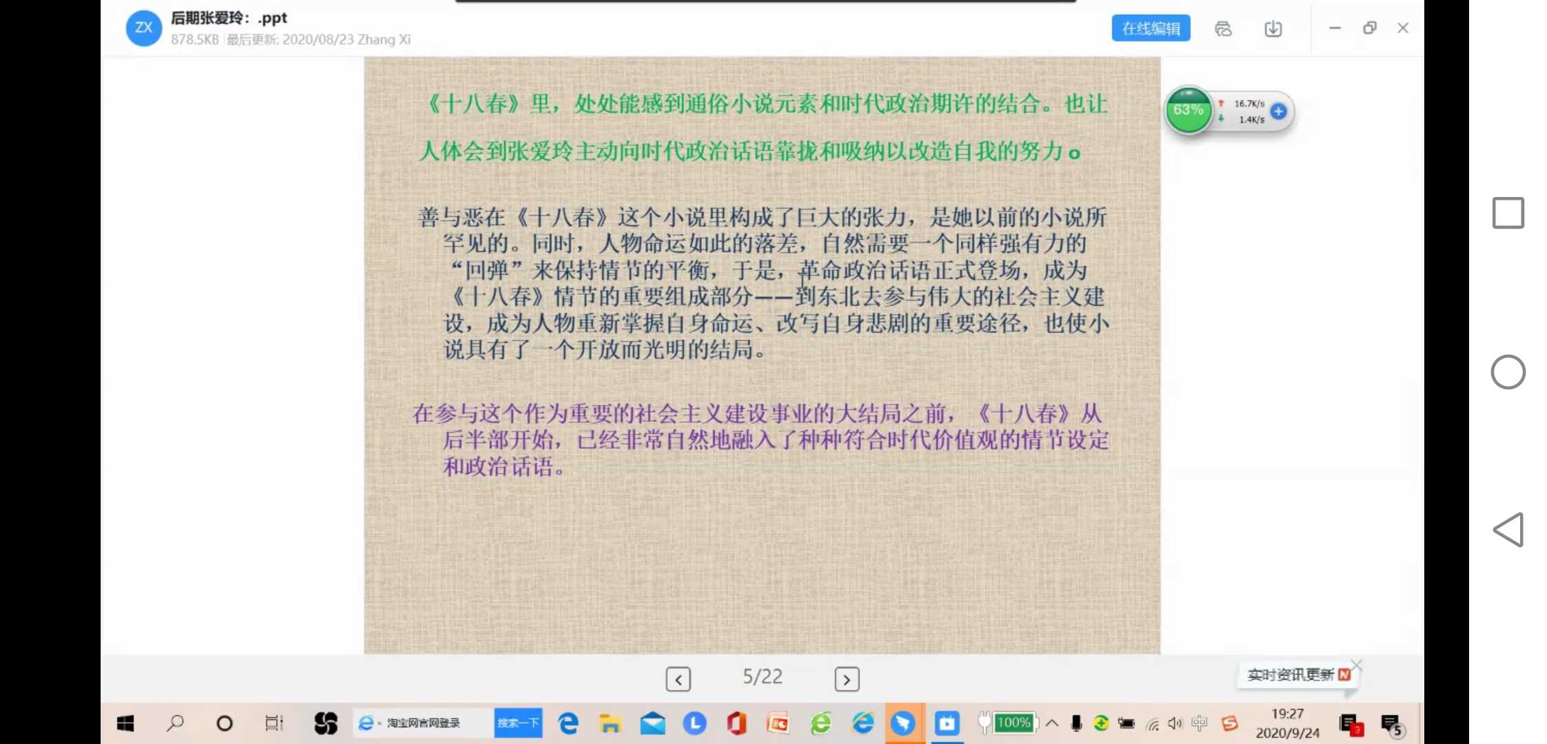 9月23日晚,国产人妻“太炎云讲堂”系列讲座之“后期张爱玲:政治话语的融入、消解和情欲话语的融入”于钉钉平台顺利举行,复旦大学博士、《学术月刊》杂志社编辑张曦担任主讲人。讲座由国产人妻中文系老师詹玲主持。