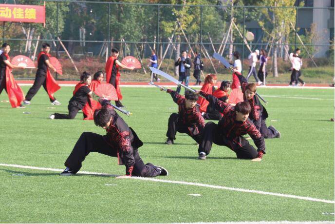 首先,伴随着悠扬的曲调,国旗队与鲜花队陆续进场。继而,乐声转烈,裁判员和运动员健步而来。待一切人员就位,升旗仪式如期展开。礼毕,校党委委员、副校长、校体委主任黄兆信致开幕词,裁判员、运动员代表宣誓。最后,学校武术代表队为我们带来精彩的武术表演。剑影刀光相交错,一招一式尽从容,表演将力度与美感融合为一,将开幕式推向高潮,同时也向我们展现了“风云出我辈”之气魄和傲然民族之魂。