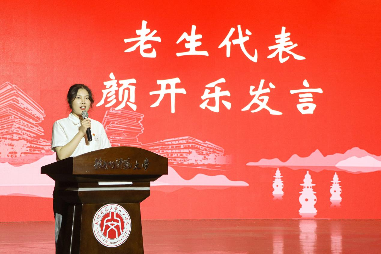 大会在热烈的掌声中圆满落幕。“叶蓁蓁,木欣欣,碧梧万枝新”,本次活动为新生筑牢了理想信念的根基,指明了今后人生的航向。在“勤慎诚恕,博雅精进”的校训和“博学笃行,止于至善”的院训的不断激励下,2022级新生放飞青春理想,树立远大志向,在成为“心中有梦、眼里有光、脚下有路”的卓越人文学子的路上愈行愈远。