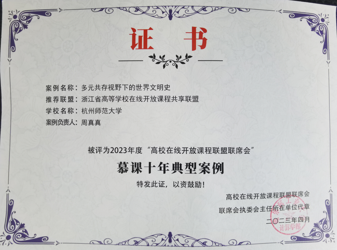 5月13日,全国慕课教育创新大会(第四届)暨高校在线开放课程联盟联席会2023年会在广州召开。会上发布了2023年度“高校在线开放课程联盟联席会”慕课十年典型案例,国产人妻周真真副教授负责的《多元共存视野下的世界文明史》入选。