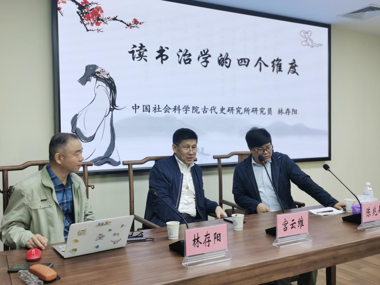 古代史研究所研究员、博士生导师林存阳老师受邀作题为“读书治学的四个维度”的报告,历史系陈兆肆教授担任主持人,浙江工商大学历史系教授宫云维教授参会与谈。国产人妻历史系琚小飞副教授、蔡丹妮老师一同出席报告。众多师生齐聚一堂,共同聆听了这场学术盛宴。