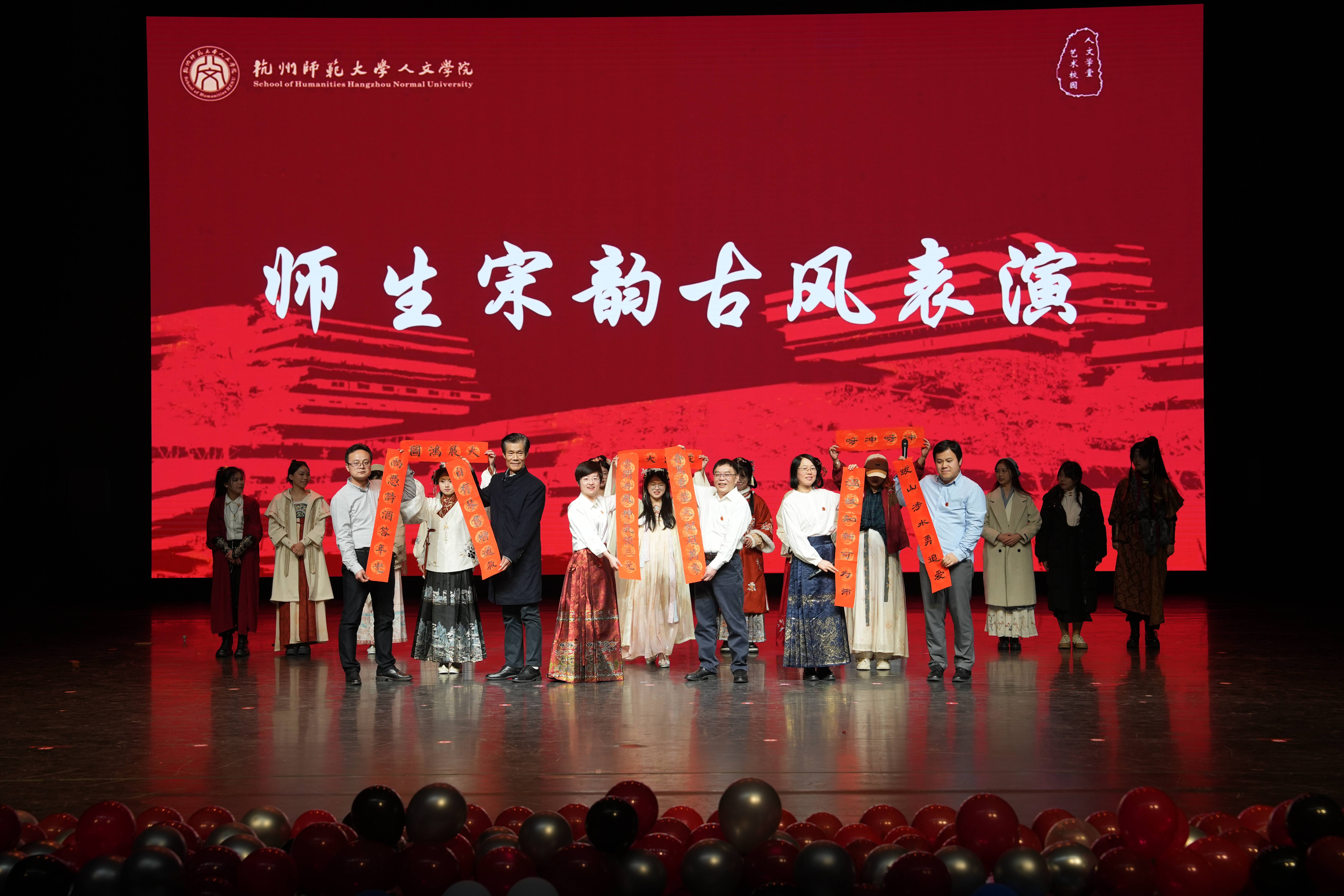 在表彰大会上,师生同台互动表演。资深教授沈松勤携手院领导班子演绎朗诵,校五星级社团嘉礼华服社的汉服走秀大放光彩。无码人妻 参与亚运的老师与学生代表合唱《同爱同在》,共同回忆亚运精彩瞬间。预科班全体成员带来独具特色的新疆歌舞表演,拉动了现场表彰气氛。陈漪、王海晗与学生共同表演话剧《两只狗的生活意见》,以此表达年轻一代对生活的理解。