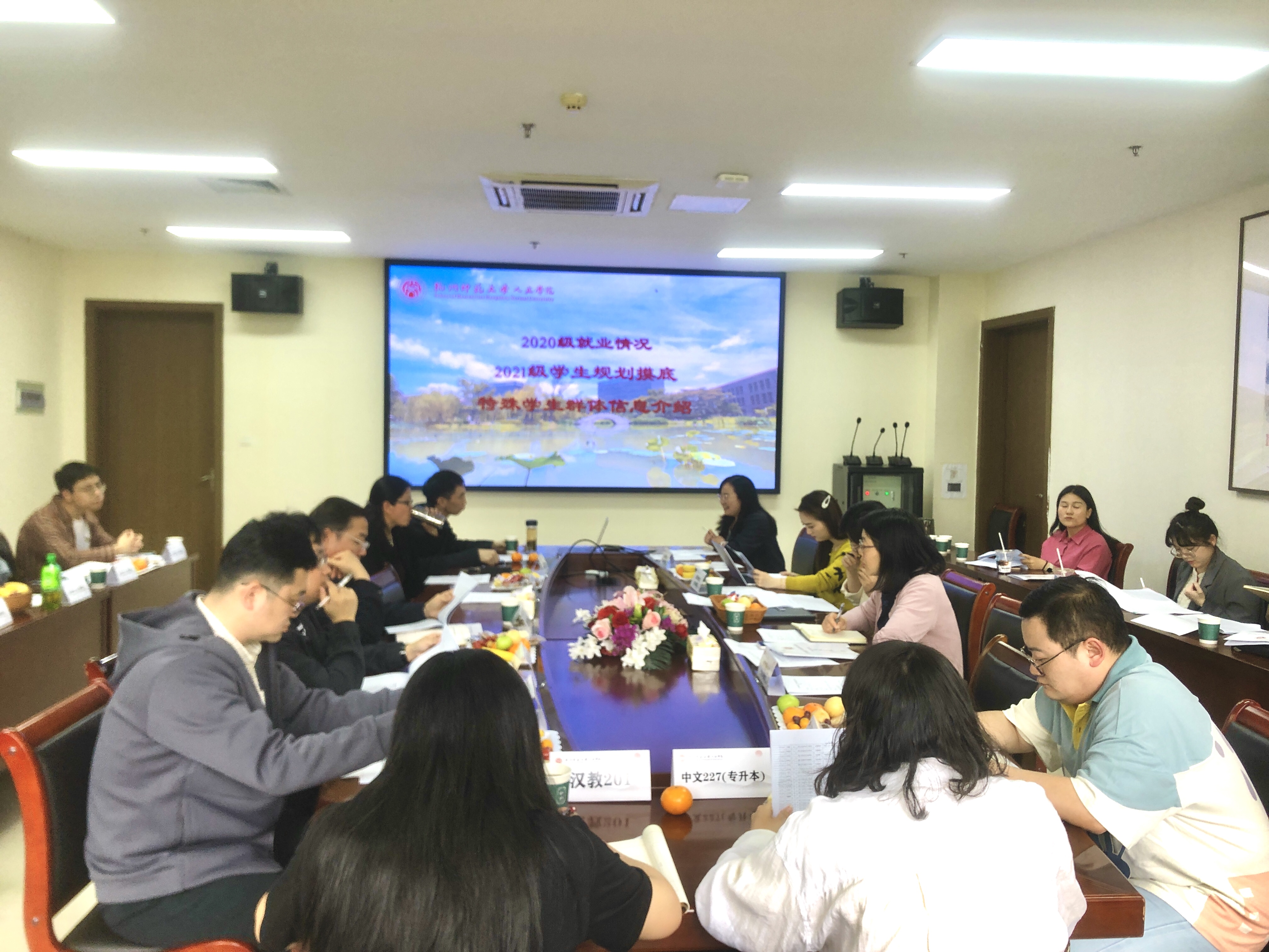 会上,各年级辅导员通报了分管班级的就业升学情况、学生规划摸底及个性化信息等。卢晚秋就2020级、2021级学生在考研就业方面的形势和分水岭问题进行了深入分析,强调了方向选择的重要性、学生在择业择校择专业层面的方式方法,提醒班主任要将工作做深做细做实,助力学生成长成才。优秀班主任代表刘小刚老师和周东华老师,为班主任们分享了班级管理和就业升学指导方面的工作经验,两位老师分别就班级的过程管理和因人而异推动就业等话题作了深入交流,丰富的工作案例使与会班主任们收获良多。