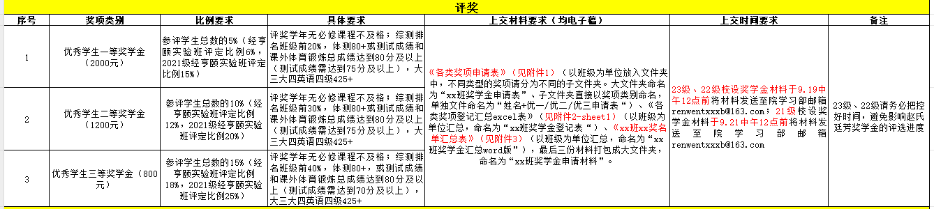 为充分调动广大学生刻苦学习、奋发向上的积极性和主动性,提高学生综合素质,促进学生全面发展,营造优良学风。根据工作安排,根据工作安排,现将2023—2024学年各项评奖评优工作等有关事项通知如下:
